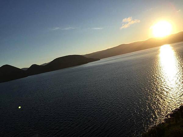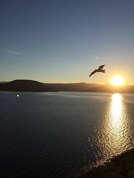 一大早湖邊就有一群日本小學生了,可能早起看日出吧!
