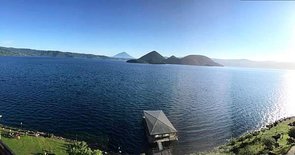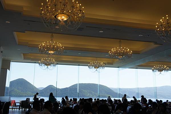 窗外是美翻天的洞爺湖景相伴~好幸福的用餐空間!