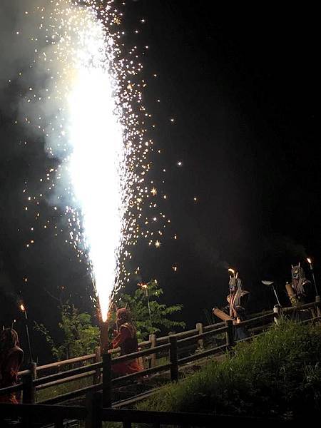 湯鬼人抱著手筒花火一起噴火的景觀真的十分壯觀