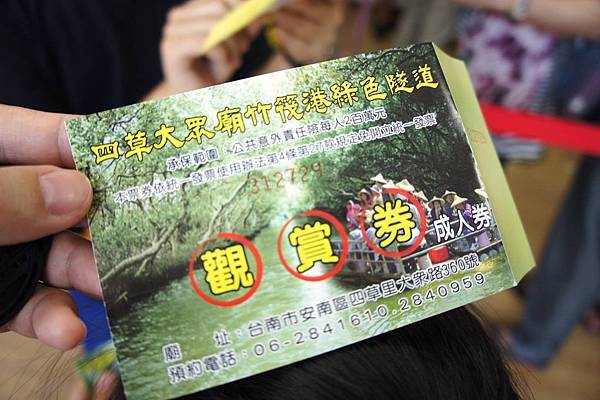 於搭船處有分台江搭船及竹筏,搭乘竹笩才能進入到仙境般的綠色隧道!