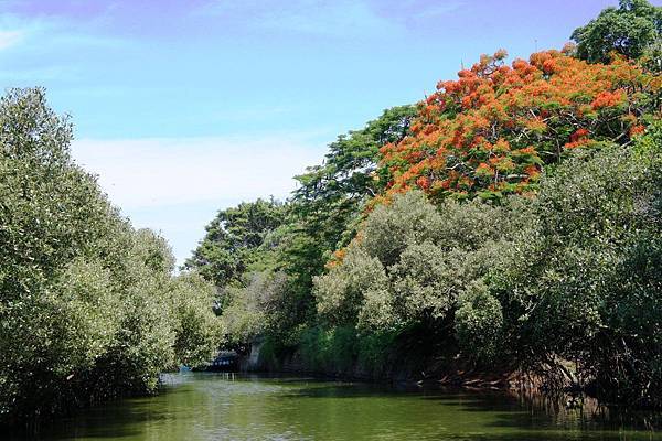 沿途可欣賞水筆仔、海茄苳、臺灣海桐等樹群,有自然的天然遮棚十分涼爽
