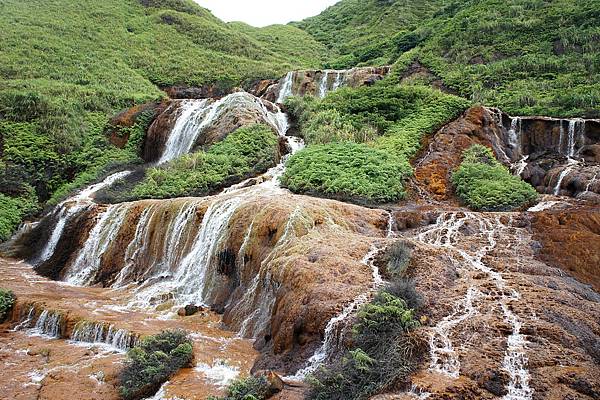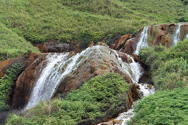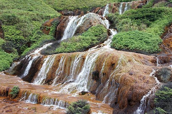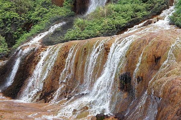 因為早期小溪上游採銅礦,礦砂沉積溪床,並有菌類附著滋生,形成金黃色的瀑布奇觀