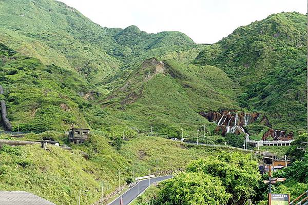 瀑布旁的台金舊礦場,可俯瞰陰陽海,景緻十分詭異
