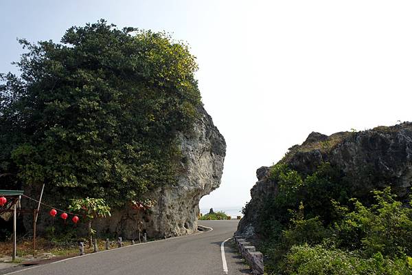 類似花瓶的特殊造型,加上岩頂上長滿了臭娘子以及盒果籐等植物