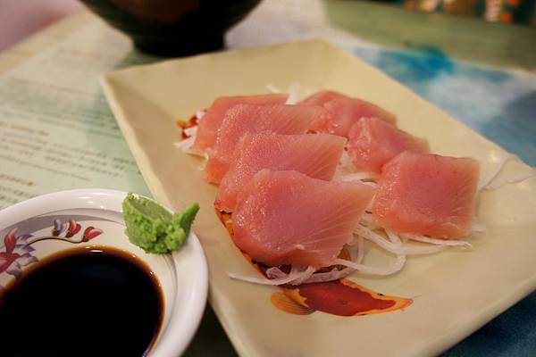 鮪魚蓋飯,上面撒了蔥花和柴魚片,蓋飯醬汁好像也是柴魚口味,甜甜鹹鹹的還蠻順口的