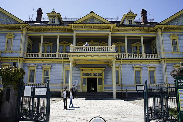 竣工木造二樓英國古典的建築樣式, 為明治時期之代表,淺藍外觀,黃色窗戶,頗為獨特