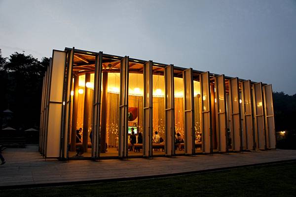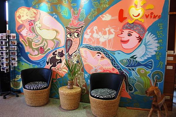 一進入紙教堂園區可以看到這棟小木屋~裡面是"生態共和餐房"