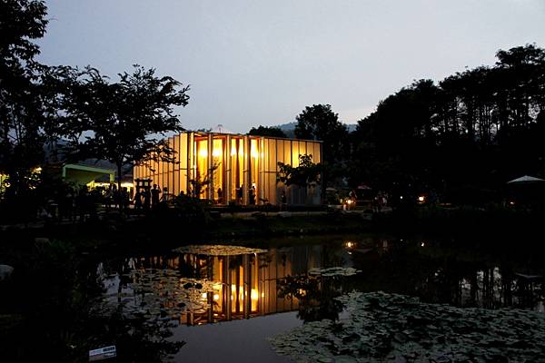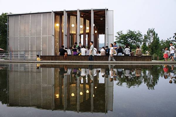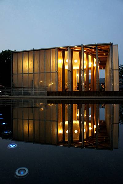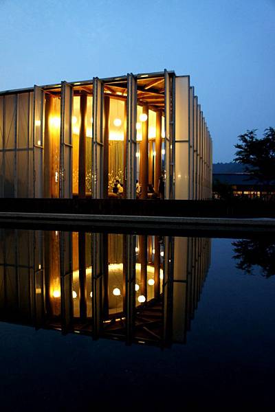 有著生態池與綠地的陪襯~紙教堂格外顯的美麗,尤其是水中倒影......
