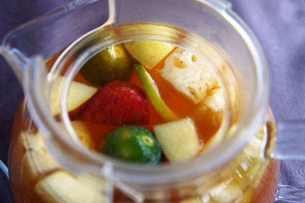 水果茶,2個小孩竟然把裡頭水果吃光光