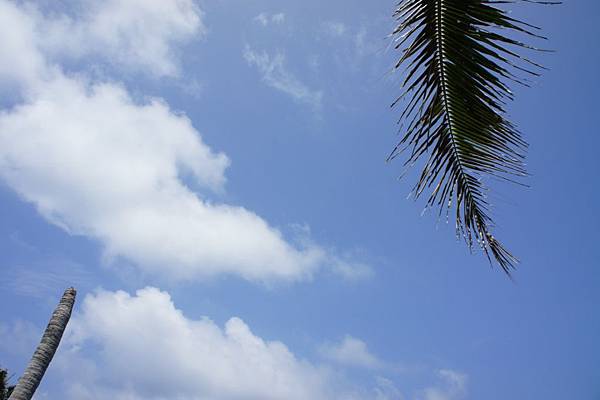 在藍天白雲和椰林棕櫚的陪襯下,漸層湛藍的海水更顯得清澈動人