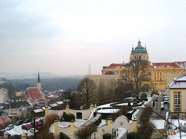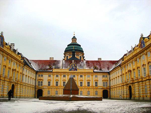 梅爾克修道院鵝黃色優雅的外觀,莊嚴地聳立於該地區的優美風景之中