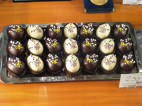 「Furst」莫札特巧克力店裡,除了巧克力,也賣多種蛋糕