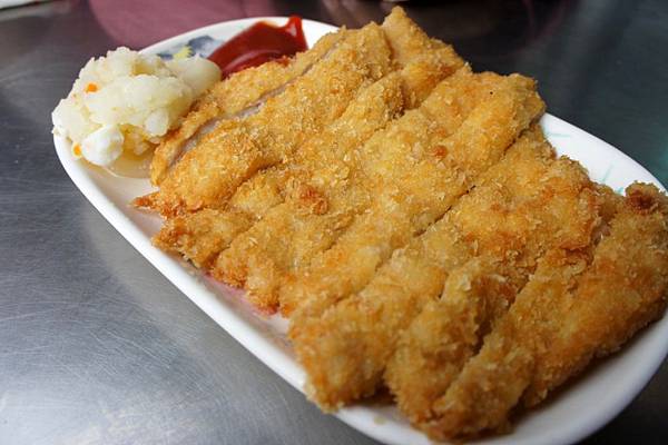 沾醬有一般的番茄醬和美乃滋混薯泥,豬排咬下肉質不會乾澀,會有鮮甜的肉汁