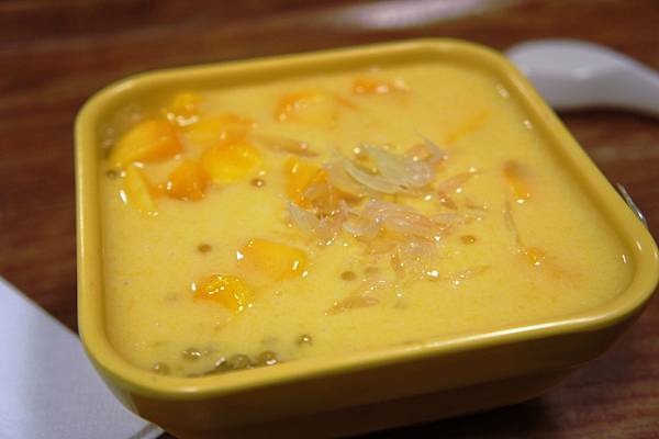 楊枝甘露,裡面有芒果、柚子、西米露搭配起來的甜品,甜中帶有顆粒的口感,好吃!
