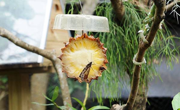 好可愛..蝴蝶停在鳳梨上吃午餐嗎?