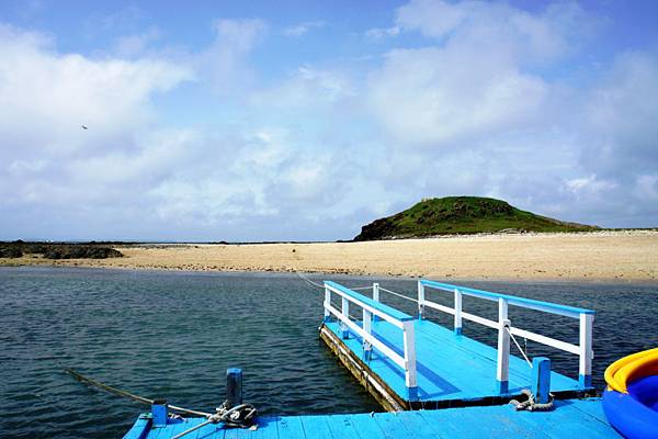 寧靜的島嶼登高遠眺,藍天白雲、湛藍海洋、沙灘淺礁四周美景如畫賞心悅目