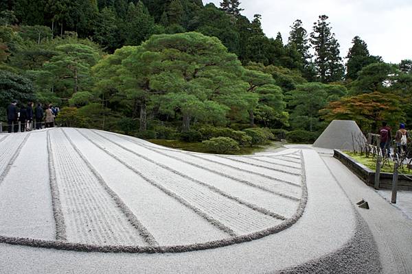 銀閣寺最受人注目的就是那巨大方整的「向月台」,而疏得極為整齊的銀沙灘,更令人嘖嘖稱奇。
