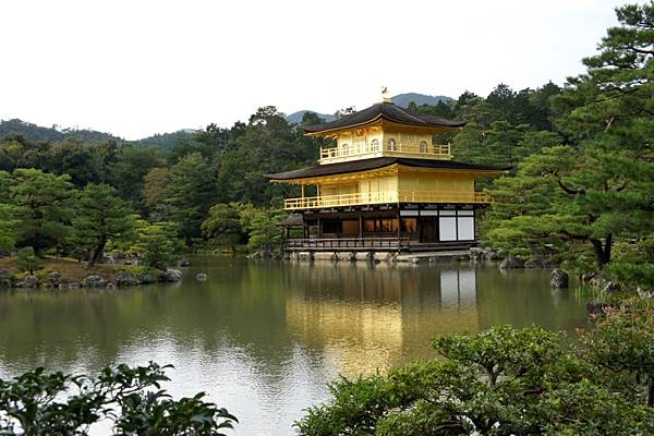 金壁輝煌的舍利殿與碧綠的鏡湖池池水相映是金閣寺最美的景色