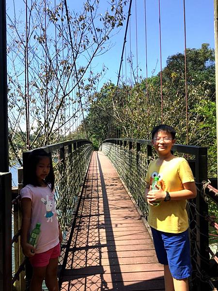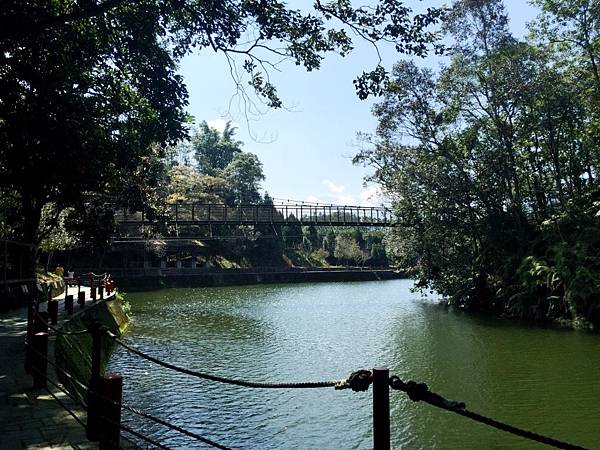 行走在吊橋上,近可俯視水庫全貌,遠可眺望集集大山