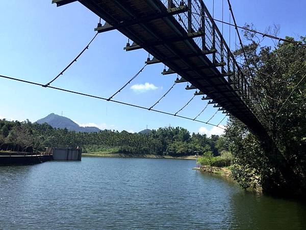 山龍坑吊橋長65公尺,連接水庫兩岸之環湖步道,造型典雅優美