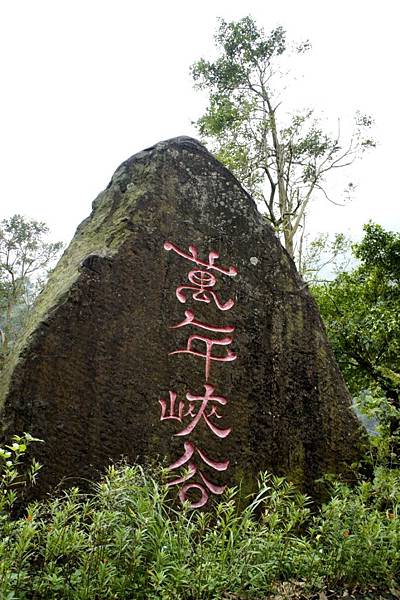 入口處以巨石雕刻的萬年峽谷標誌