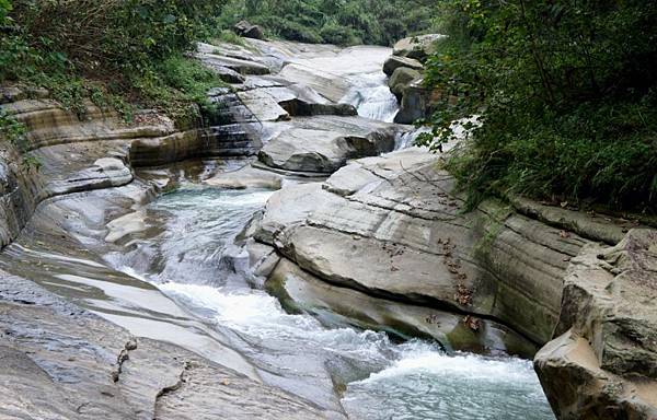 因內湖溪水流長期切割河床所造成的峽谷景觀,由於流水經年累月的沖刷