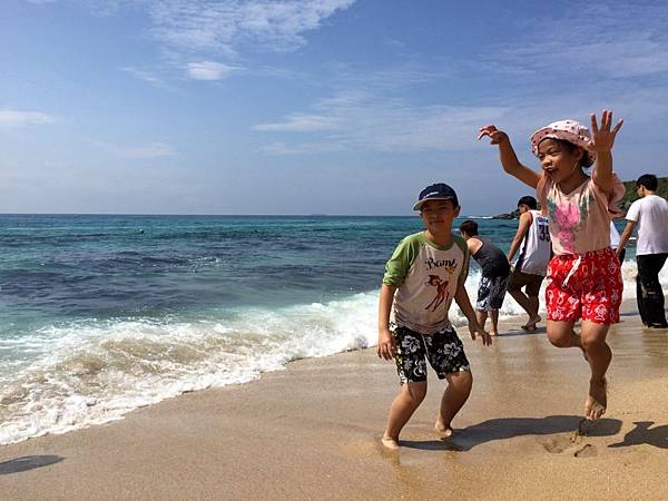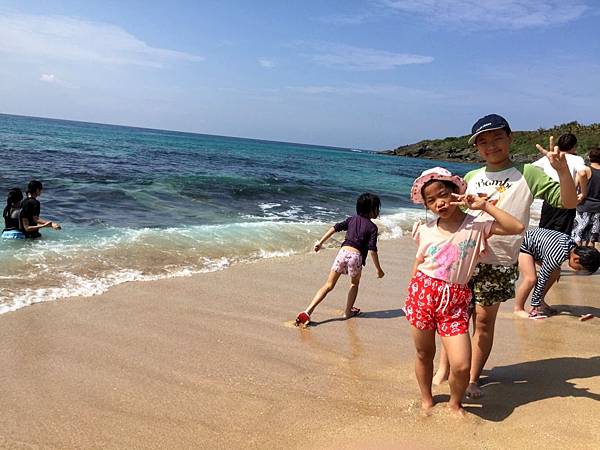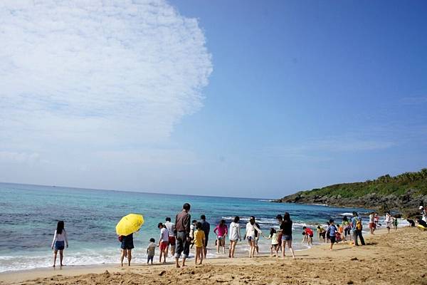 墾丁白沙灣細白的砂粒,在陽光的輝映下,盈潔可人,可媲美南灣海灘