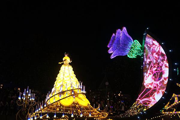 貝兒公主燭光隊伍、反斗奇兵花車隊伍、米奇及好朋友花車隊伍隨後閃亮登場
