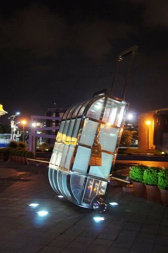 作品名稱:大旅行時代,材質:玻璃不銹鋼,尺寸:390*175*190cm