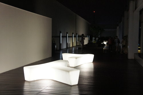 觀景平台裡擺設9座夜間可發光藝術雕塑椅,從西班牙引進會發光的室外座椅