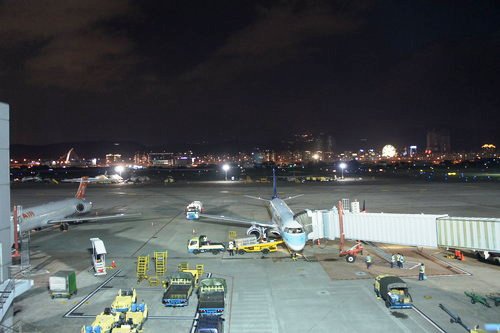 觀景台上除能欣賞飛機英姿,也能一覽圓山大飯店、大屯山、美麗華摩天輪