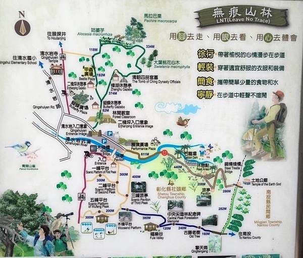行進間,耳聞烏鳴細語,眼及層層峰巒相疊的自然享受!