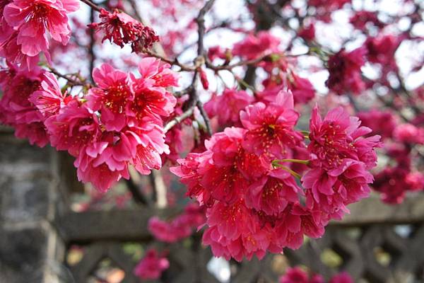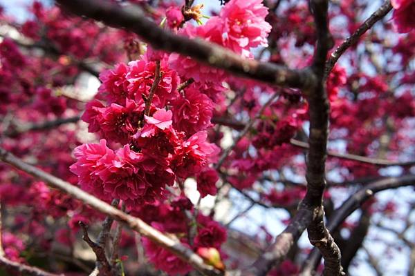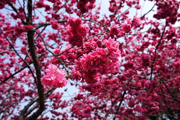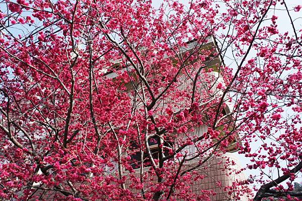 春節時分櫻姿綻放,櫻紅滿蓋天際線,美麗且賞心悅目的櫻花林