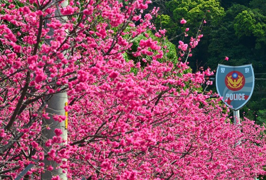 別忘了來張警察局標誌與櫻花的合照,呵呵!