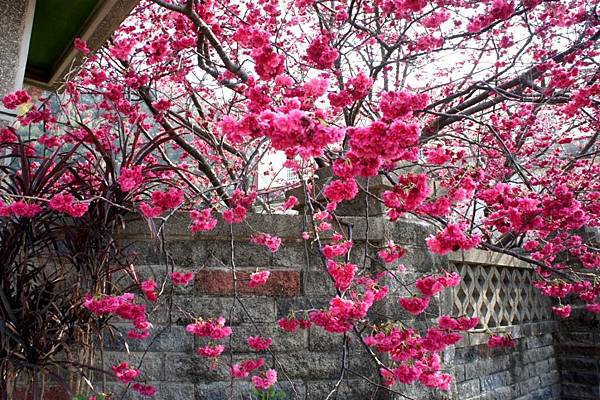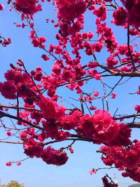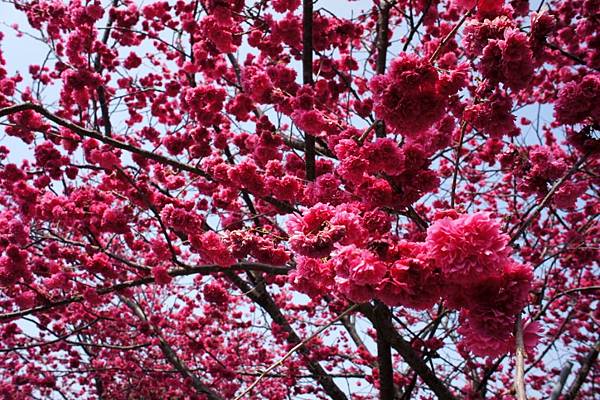 枝頭上盡是滿開的桃紅,喜氣的八重櫻色澤,真的很適合在春節氣氛