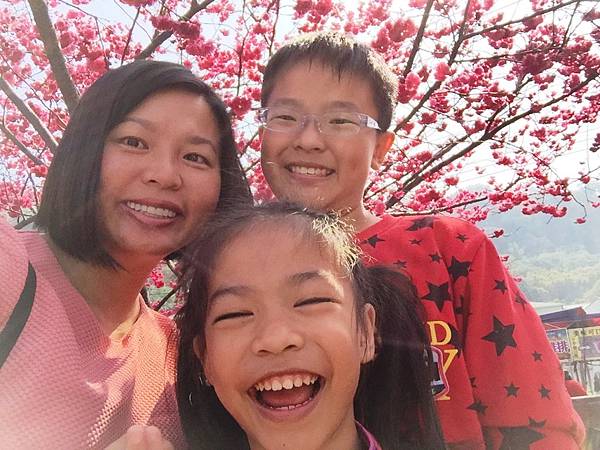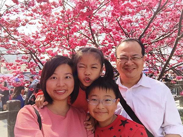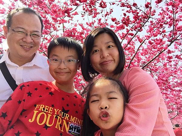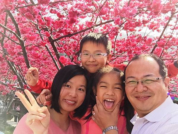 在櫻花樹下我們全家瘋狂拍照!Ann真的很有戲耶!