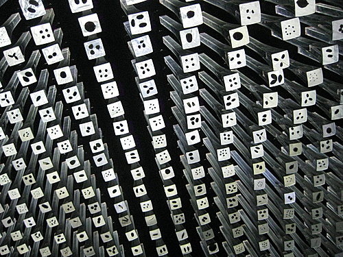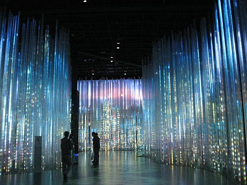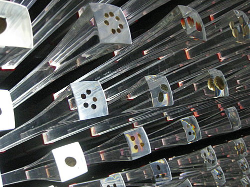 <種子聖殿> 透明壓克力細柱內鑲嵌各種未來種子,形成一面面巨大的種子牆