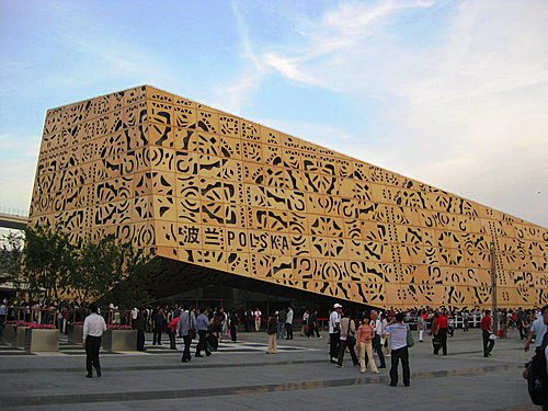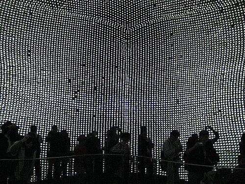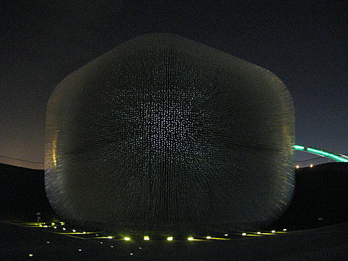 英國館,外觀 6萬根長7.5公尺的透明壓克力細柱所構成,風一吹會隨風搖曳的巨大<蒲公英>