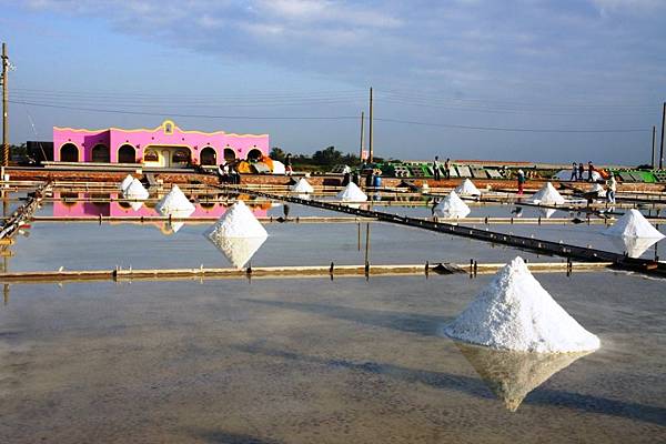 努力地堆鹽當中,有這般景色都得感謝他們努力的付出