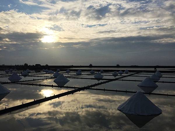 落日餘暉漸漸開始出現~鹽田裡的倒影,使得北門這裡的夕陽更顯獨特美麗!