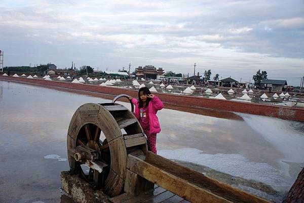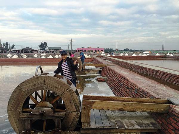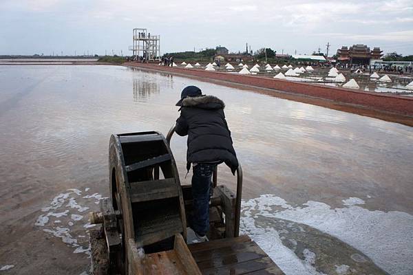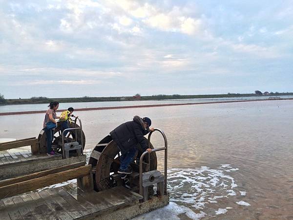 鹽田另一頭踩水車,體驗昔日鹽工賣力踩水車,引鹽水進入鹽池