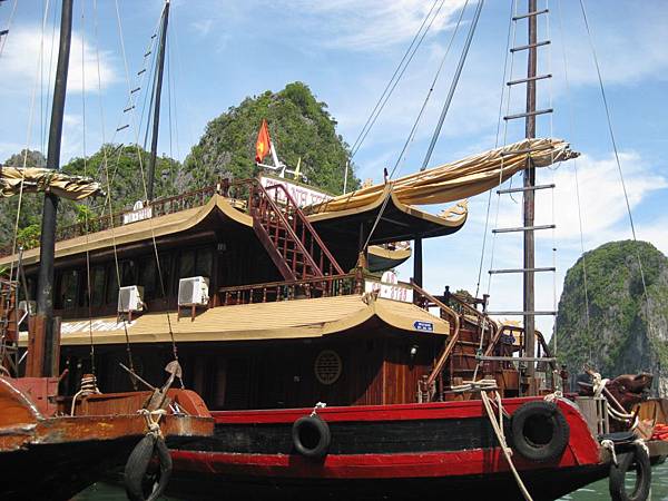 船上工作人員解說下龍灣獨特的地理風光,以及洞內各奇型異狀鐘乳石柱的傳說