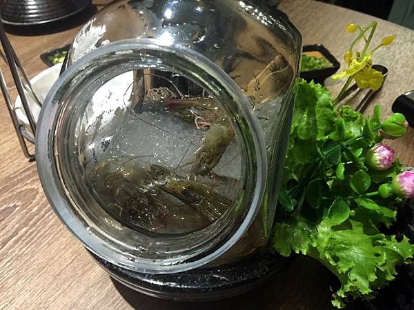 冰封活跳蝦,鮮蝦盛裝在玻璃罐內,上桌吸睛百分百