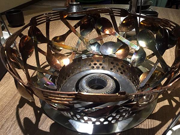 鍋架好有藝術,圍著一圈以湯匙&叉子做成的鍋架,非常有巧思