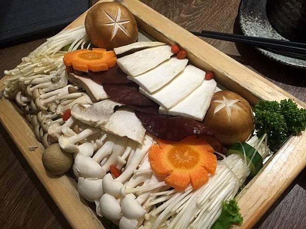 菇菇盛合,吃鍋除了肉品、海鮮,也要點蔬菜品嚐