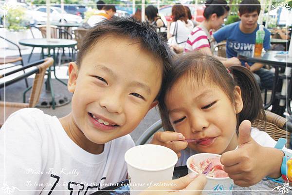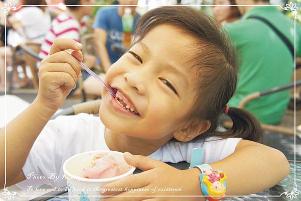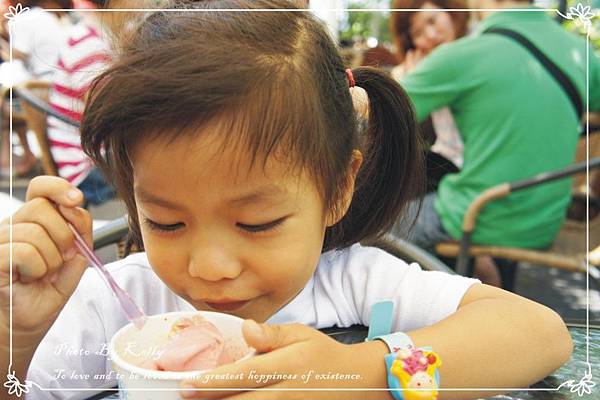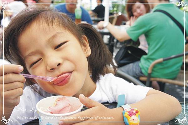 看著草莓冰淇淋,Ann整個在"偷笑",哈哈!