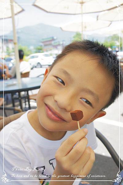 悠閒地坐在巧克力工房貼心提供的露天咖啡座椅,享受巧克力甜美的好滋味及片刻的浪漫