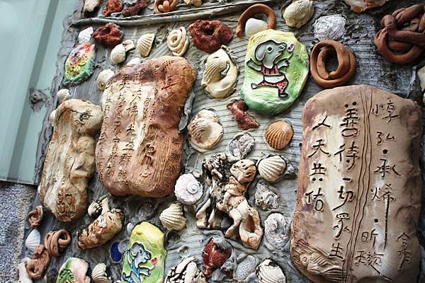 以各種貝殼及彩繪石頭拼湊而成的外牆,很美很別緻!