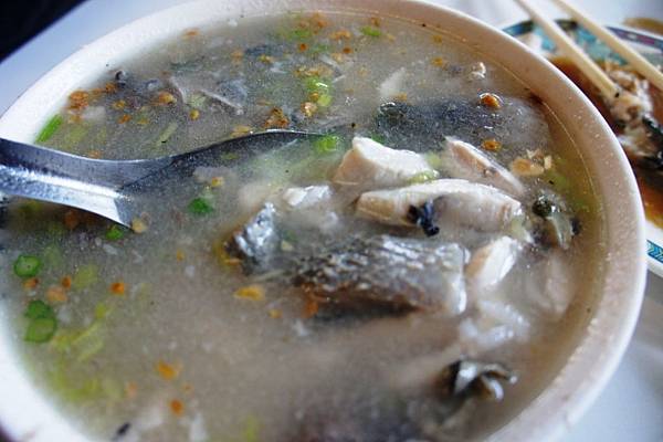 綜合鹹粥,有魚碎肉、魚肉、魚皮、小蚵仔,完全吃不到小刺,而且魚肉感覺有先煎過,特別香