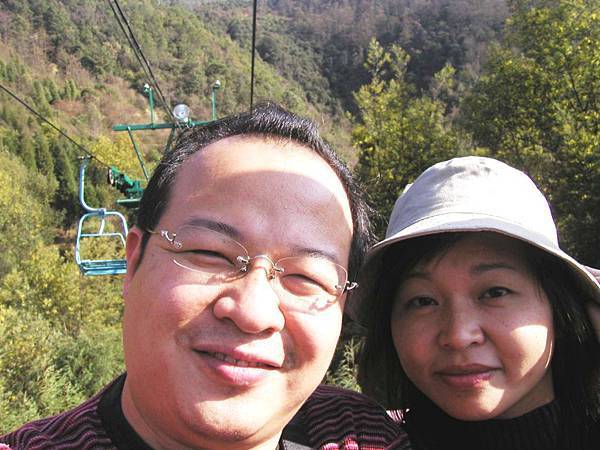 纜車上自拍,Kelly頭上的遮陽帽~敗家戰利品人民幣5元(便宜啦)約台幣22元